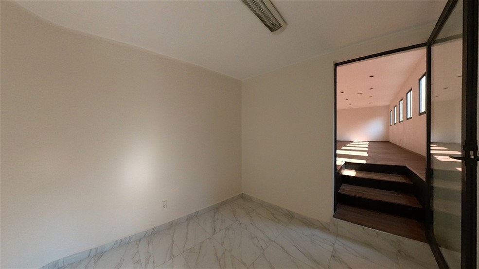 Caseta de vigilancia, recepción, diversos despachos y áreas amplias divisibles, sala de juntas bodega, baños, 7 lugares de estacionamiento. En la parte trasera, un edificio de 2 plantas que puede utilizarse como depósito, aula, bodega o comedor.